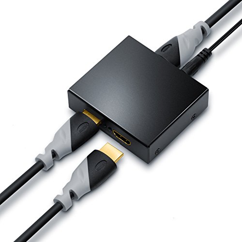 Connettori: 1 x HDMI IN (femmina), 2 x HDMI OUT (femmina), 1 x connettore di alimentazione 5,5 millimetri spina cava | larghezza di banda max: 340Mhz | di alta qualità, custodia robusta (compatto) | chipset: Silicon Image Sil9187BCNU & P13HDMI412ADZBE