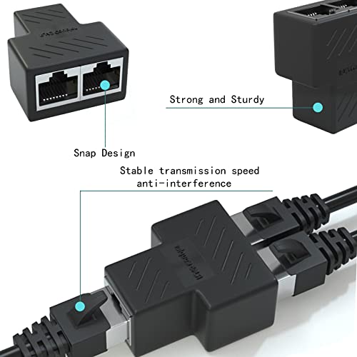 2 Splitter Ethernet, Connettore sdoppiatore RJ45, Rete Lan Femmina Femmina Ethernet Adattatore da 1 a 2 per Due Computer Online Contemporaneamente con 2 Accoppiatore RJ45