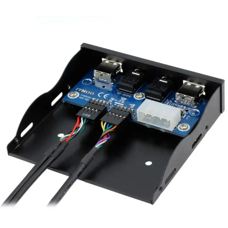 3.5 inch 9Pin to 2 USB 2.0 Port HUB Splitter Floppy Bay HD Audio 3.5mm Earphone Jack Expansion Front Panel Rack for Computer PC