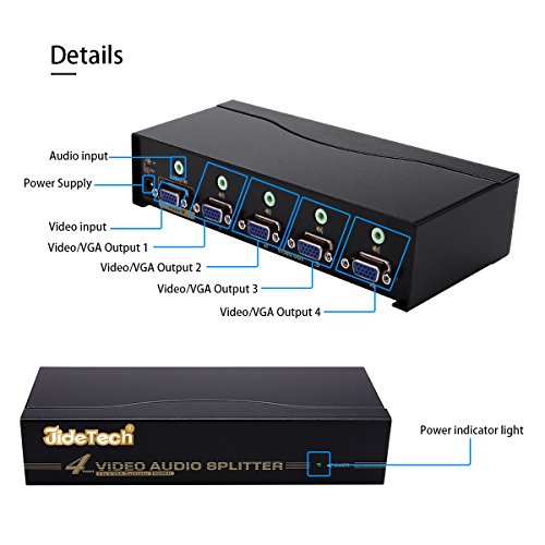 VGA Splitter 4 Porte Audio Video Splitter Supporto Monitor XGA, VGA, SVGA e Multisync