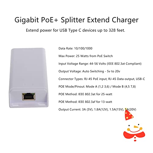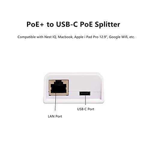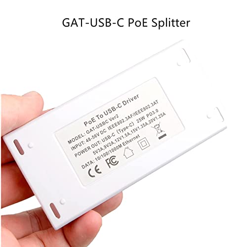 PoE Splitter - Power Over Ethernet Gigabit PoE+ Splitter adattatore per Auto 5V 9V 12V 15V 20V per Nest IQ/Macbook/Google WiFi estendere la ricarica fino a 100 m, GAT-USB-C