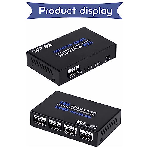 【Plug & Play】splitter HDMI 1x4 è facile da configurare e utilizzare. Basta collegare i tuoi dispositivi HDMI e l'adattatore CA,Non è richiesto alcun driver.Questo articolo è realizzato in robusto materiale metallico, resistente alla pressione e alle cadute, e il suo design compatto è comodo per portarlo con sé ovunque.