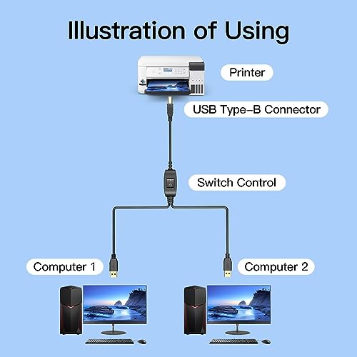 Controllo interruttore, risparmio di tempo e costi: il nostro cavo per stampante doppio USB consente di condividere una stampante a due computer senza spendere soldi per acquistare un'altra stampante, più comodo ed economico. Il controllo dell'interruttore consente di controllare/spegnere facilmente per risparmiare i problemi di collegare e scollegare i cavi frequentemente. Pertanto, può anche ridurre i danni causati dalla spina e scollegare e prolungare la durata del cavo della stampante.