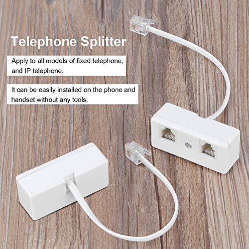 NB Splitter telefonico bidirezionale, cavo RJ11 6P4C adattatore da parete e separatore, convertitore maschio a 2 femmina per rete fissa (bianco, confezione da 2)