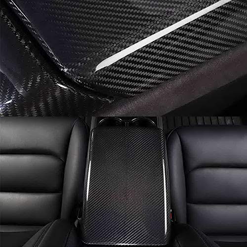 SPLLEADER Copertura Protettiva della Scatola del Bracciolo della Macchina per Tesla Modello 3 2019-2021 Autoadesivi Interni della Decorazione del Pannello della Fibra di Carbonio Accessorio