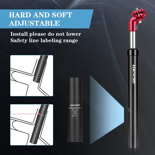 Splumzer Reggisella Bici Reggisella Ammortizzato Bici 27.2 31.6 Alluminio Reggisella Regolabile per MTB Bici da Strada Mountain Bike (Rosso, 31.6mm)