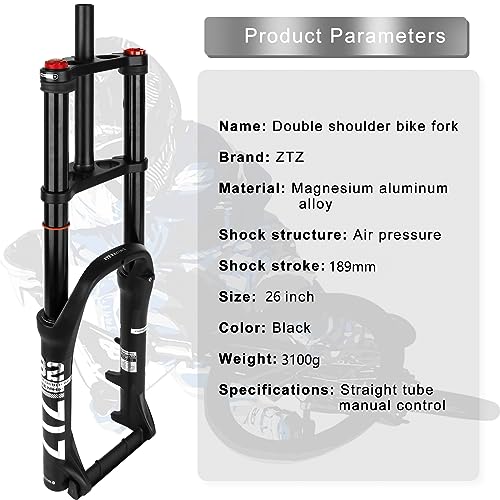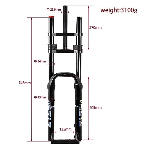 Splumzer【EU Stock Forcella Ammortizzata per Bici 26" 4.0 per Mountain Bike Air Doppia Spalla Downhill Discesa in Corda Doppia Ammortizzatore MTB/QR/AM