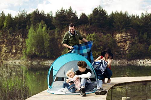 Protezione solare UV40: la tenda da spiaggia leggera offre a voi e ai vostri bambini una protezione efficace contro i raggi UV 40 dalla luce solare intensa. La tenda pop-up offre anche una protezione da vento e sguardi indiscreti.