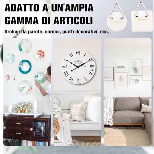 【Versatilità, Ampia Applicazione】 I ganci adesivi invisibili possono essere utilizzati in una varietà di luoghi, come cucine, uffici, bagni, roulotte, ecc. Per piccole cucine, appartamenti. Ideale per tavole decorative, tavole in ceramica, tavole antiche, tavole antiche, tavole natalizie, opere d'arte, cornici e decorazioni, ecc.