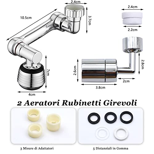 SPOKKI 2 Pezzi Prolunga Rubinetto Aeratore Set, Rubinetto Rotante 1080 + 720 Gradi, Antispruzzo Girevole Prolunga Aeratore Rubinetto Bagno Cucina, M20 M22 M24, 2 Modalità Acqua Regolabile