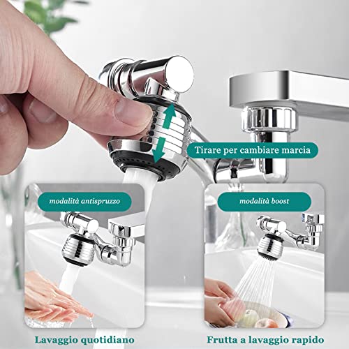 [Rotazione di 1080 e 720 gradi] Copri ogni angolo del bacino con la rotazione multipla di 360 gradi di ogni parte. rubinetto rotante 1080 gradi è facilmente ripiegabile ed espandibile. È possibile ruotare rapidamente l'aeratore nella direzione desiderata.