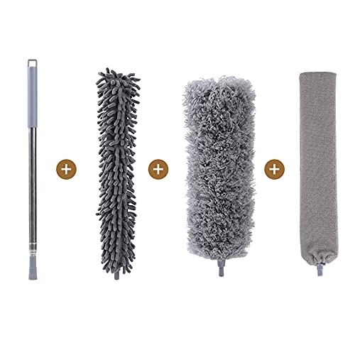 CINY 4 Spolverini Telescopici In Microfibra, Kit Per La Pulizia Dello Spolverino Con Asta Di Prolunga e 3 Testine Di Ricambio, Piumini Per Pulire Ventilatore a Soffitto Alto Luci Tapparelle Automobili