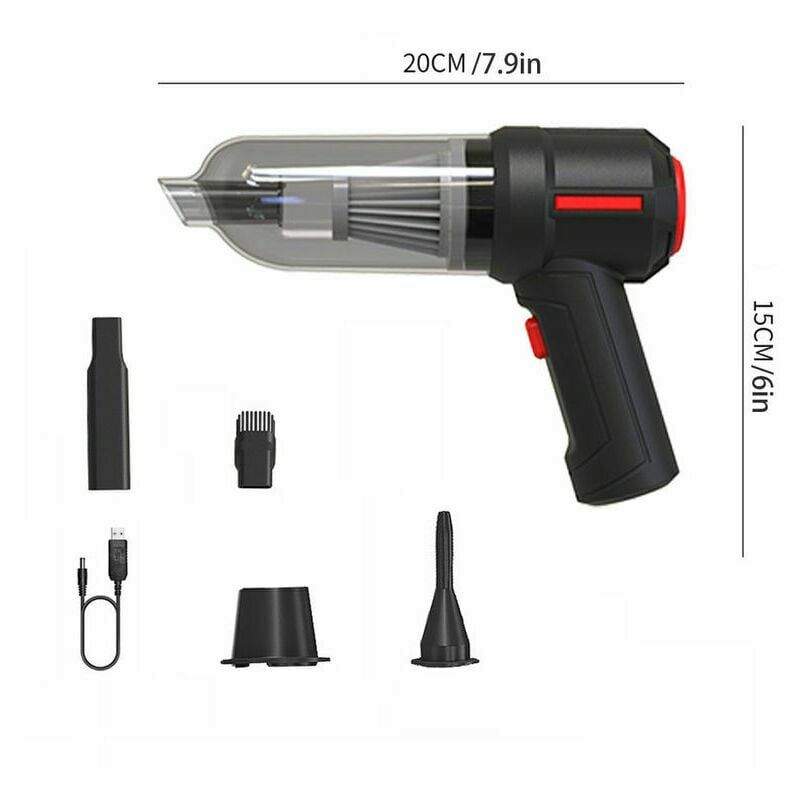 Aeratore portatile cordless 3 in 1 Air Duster Mini 9000Pa Tastiera per auto cordless Aspirapolvere portatile Aspirazione ciclonica domestica Caratteristiche: Modello: ST -6629 Velocità nominale: 35500 giri/min Tensione nominale: 7,4 V Potenza nominale: 120 W Aspirazione sotto vuoto: 9000 pa Capacità della batteria al litio: 2*2000mAh Modalità di ricarica: cavo di ricarica USB da 5 V. Rumore: ≤ 84 dB Temperatura di utilizzo: -20℃~+50 ℃ Lunghezza cavo USB: circa 1 m Dimensioni: 20 x 15 cm/7,9 x 6 pollici Ambito principale di applicazione: auto e casa a doppio uso Caratteristiche: -Motore in rame puro, 120 W di potenza elevata. -Design ad alta densità, nessuna perdita d'aria, design di tenuta, nessuna perdita di polvere. p> -4 funzioni in 1: gonfiare, aspirare, aspirare, aspirare + spazzolare. - Pala del ventilatore in lega, tutto n anima in rame, movimento intelligente, assorbimento a lungo termine non è caldo. -Con diversi ugelli di aspirazione per soddisfare le diverse esigenze di