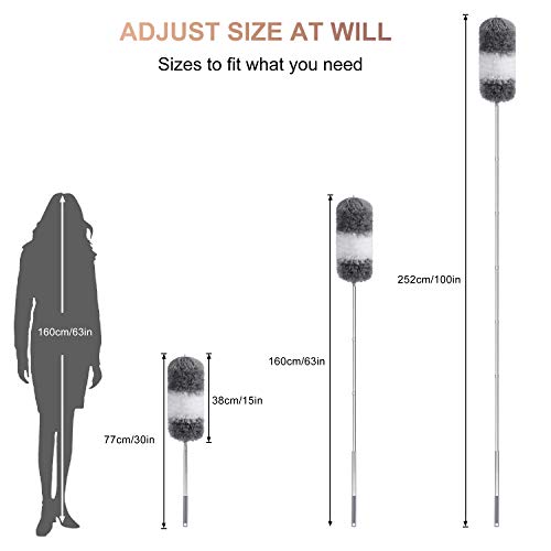 【Spolverino in microfibra estensibile】 Il palo di prolunga in acciaio inossidabile può estendersi da 30 a 100 pollici che può pulire ovunque tu voglia a casa tua, non è più necessaria la scala per salire.