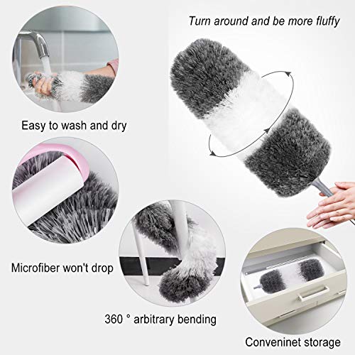 【Piegabile e accuratamente pulito】 Aggiornamento Lo spolverino in microfibra è pieghevole fino a qualsiasi angolazione, ti aiuta a pulire facilmente le aree difficili da raggiungere (come la parte superiore della libreria). È il miglior aiuto per le faccende domestiche.