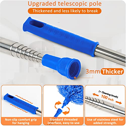 Spolverino con piume, 6 pezzi, per la pulizia, estensibile, con asta telescopica, manico lungo, 250 cm, riutilizzabile, pieghevole, lavabile, in microfibra, per aspirapolvere a soffitto, a forma di ragnatela, sotto il divano, blu