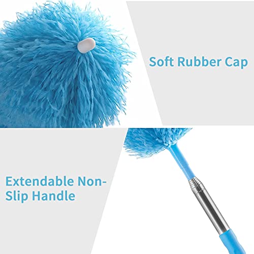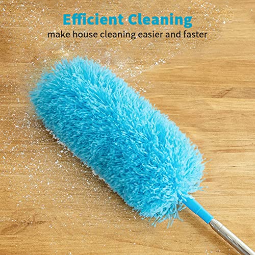 Spolverino per Polvere BIGLUFU, 2 Lavabile Telescopico Duster in Microfibra, 95 Inch Spolverinos Microfibra Allungabile per la Pulizia dei Ragnatela Ventilatore Tenda (Blu)