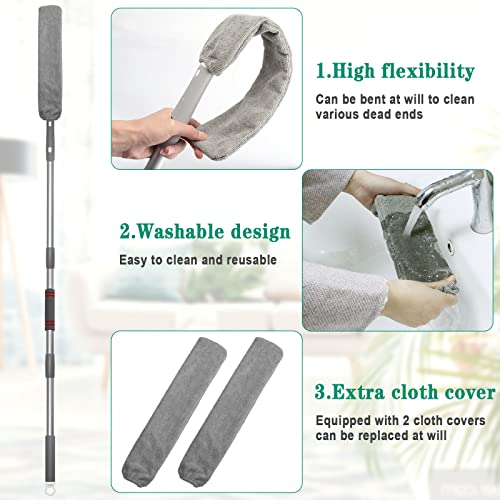 1)Pratico strumento di pulizia - Il nostro spolverini microfibra è dotato di una testina fine e ampia, adatta a pulire tutti i tipi di angoli e fessure. Lo spolverino per polvere allungabile flessibile è ideale per pulire le fessure dei mobili, sotto i divani, i letti, gli armadi, i soffitti, i ventilatori a soffitto, le automobili e altro ancora.