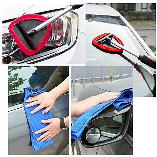 JZK Spolverino Spazzola Parabrezza Auto, pulitore Vetro Auto con Manico Lungo allungabile e Testa orientabile, con 2 Panni Microfibra e 1 Panno per Pulizia