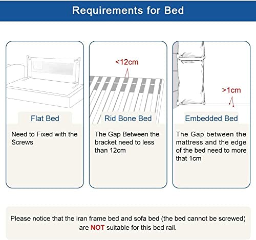 Ampia Gamma di Usi: questa ringhiera è adatta solo per letti in legno massiccio. Non per letto a molle. Questo coprimaterasso è dotato di un pulsante di regolazione dell'altezza a 3 livelli per tutti i materassi. È possibile regolare a seconda dello spessore del materasso