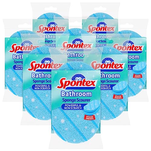 Spontex Bathroom - Spugnetta, non Raya, speciale per bagno, misura XL, fibra bianca, colore: blu (Confezione da 8)