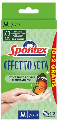 Spontex Guanti Monouso Sensitive Fine Effetto Seta, Lattice Satinato, Beige, Taglia M