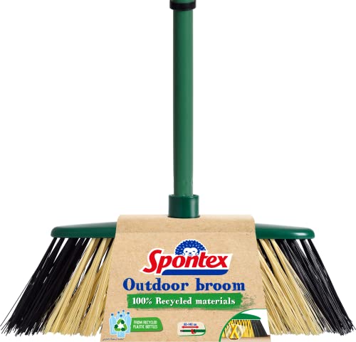 Spontex Scopa da esterno in materiali riciclati al 100%, con manico telescopico, 2 tipi di setole