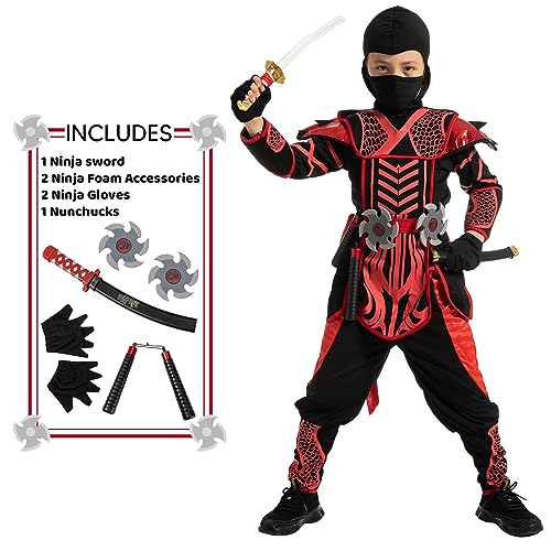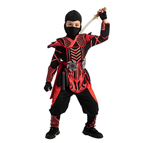 Spooktacular Creations Costume da Guerriero Ninja Rosso e Nero per Bambini e Bambine, Festa di Halloween, Gioco di Ruolo Ninja, Feste a Tema