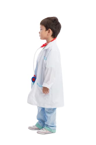 Costume da camice bianco da laboratorio medico per bambini unisex per bambini, include camice da medico con ampia tasca sul petto, due tasche inferiori e bottoni reali e un giocattolo per stetoscopio!