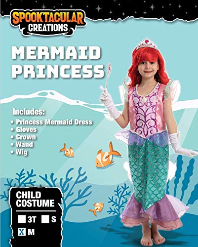 Spooktacular Creations Little Girl Mermaid Princess Costume Include Mermaid red Wig, Crown, Magic Wand and Gloves