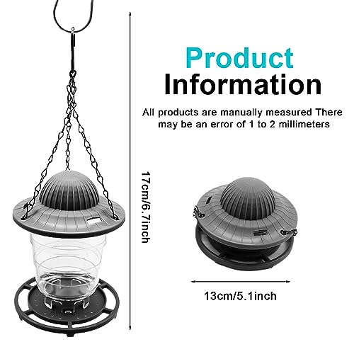 Mangiatoia per uccelli con grande capacità: l'alimentatore ad alta capacità consente di inserire più cibo in una sola volta, riducendo la fatica di aggiungere cibo frequentemente. Lo spazioso spazio interno della mangiatoia può contenere fino a 40 oz/2,5 libbre di cibo e attira più uccelli da mangiare. È possibile mescolare diversi tipi di mangime per uccelli nella mangiatoia per uccelli per offrire agli uccelli una vasta scelta di cibo e portare il birdwatching a un livello superiore.