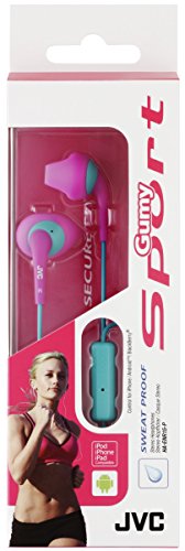 JVC Gumy Sport Auricolari in Ear Antisudore e Antischizzo (IPX2), con Auricolare Nozzle Fit, Cavo 1.0 M, Auricolari S/M, con Microfono e Telecomando a Pulsante Singolo, Compatibile con Iphone/Blackberry/Android, Rosa