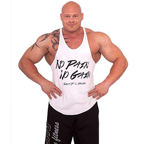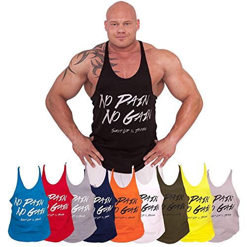 C.P. Sport - Canotta per bodybuilding modello con la scritta in inglese “No Pain No Gain”