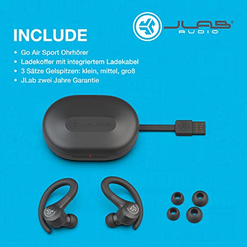 JLab Go Air Sport - Cuffie Bluetooth Sport Running, Auricolari Sport, Resistenti al sudore IP55, 32ore di riproduzione Bluetooth, Suono personalizzabile EQ3, Chiamate Chiare C3, Cuffie in ear, grafite