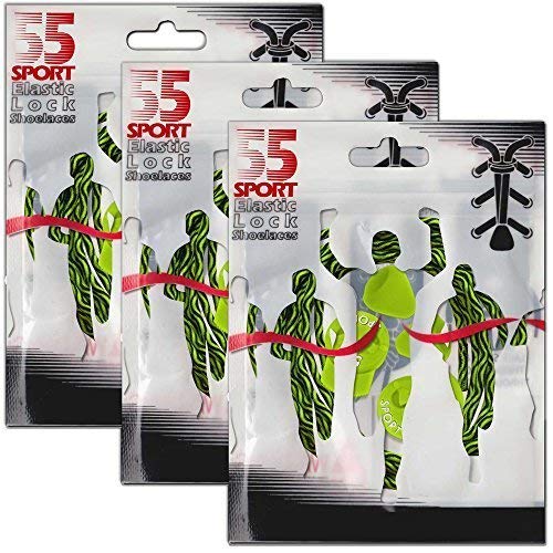 55 Sport - Lacci elastici con chiusura, motivo zig zag, per corsa e Triathlon, Uomo donna Bambino, Lime (3 Pack), 0 neonato