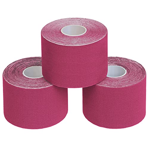 BB Sport 3 Rotoli Nastro Kinesiologico 5 m x 5,0 cm Diversi Colori E-Book Esempi Applicazione Tape Kinesiologico Muscolare Cerotto, Colore:rosa