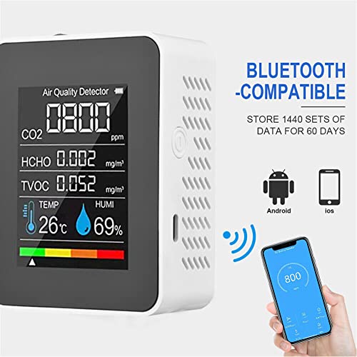* Misuratore di qualità dell'aria con batteria integrata da 1200 mAh ad alte prestazioni per un tempo di riproduzione più lungo, ricaricabile tramite USB, è possibile caricare il monitor della qualità dell'aria tramite power bank, alimentatore, computer, PC, laptop.