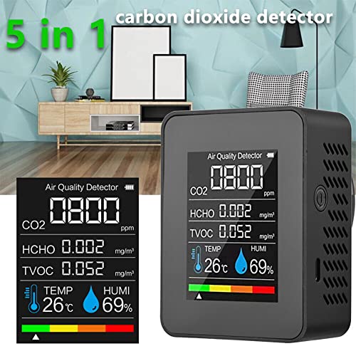 SPORTARC 5 in1 Indoor Air Quality Monitor CO2 HCHO TVOC AQI Meter Detector Tester temperatura e umidità colorato schermo LCD Nero