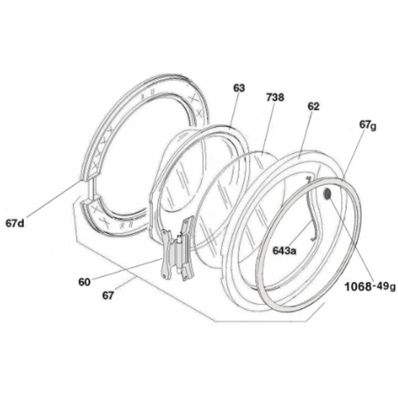 Sportello completo (codice 67) - 43015213 - [LAVE-LINGE CANDY:] HGBW14107THB1S, CSW496DB47, HGBW1496THB/1S, WSC485DB, WSC485DB47, CSW485DB47