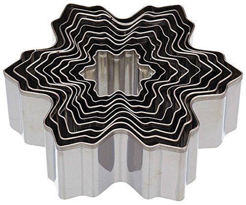 SportFun, set di 6 stampini per biscotti 3D in acciaio inox, per decorazioni natalizie con precisione e maneggevolezza piacevole, Acciaio inossidabile, argento, Schneeflocke 9-tlg