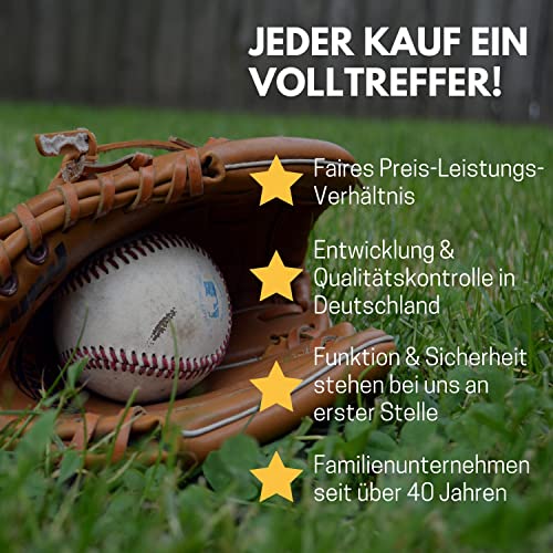 Caratteristiche - Mazza da baseball in legno massiccio, lunghezza: circa 61 cm I Baseball Diametro 70 mm I Guanto 'Junior' 9,5 pollici 24 cm