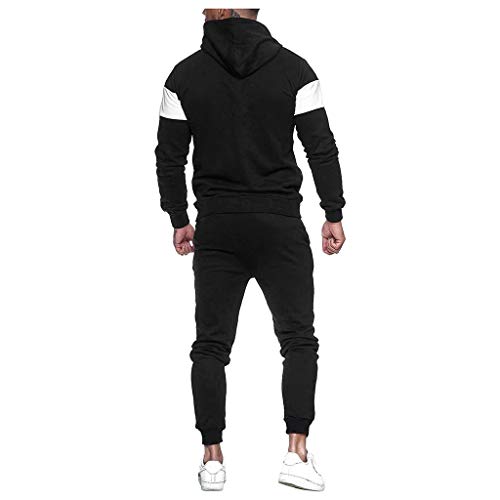 DAY8 Tuta Uomo Sportiva Completa Estiva Invernale Tute Da Ginnastica Uomo Invernali Cotone Righe Patchwork Felpe Con Cappuccio E Zip + Pantaloni Sportivi (nero, XL)