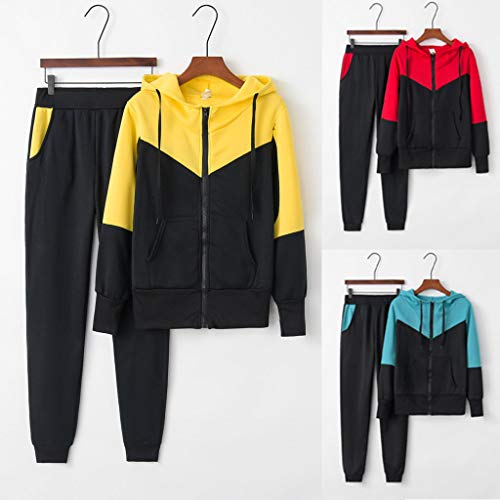 Tuta Sportiva da Donna con Cappuccio in Tinta Unita, Tuta Sportiva da Donna con Felpa e Pantaloni con Cappuccio Tinta Unita per Autumn