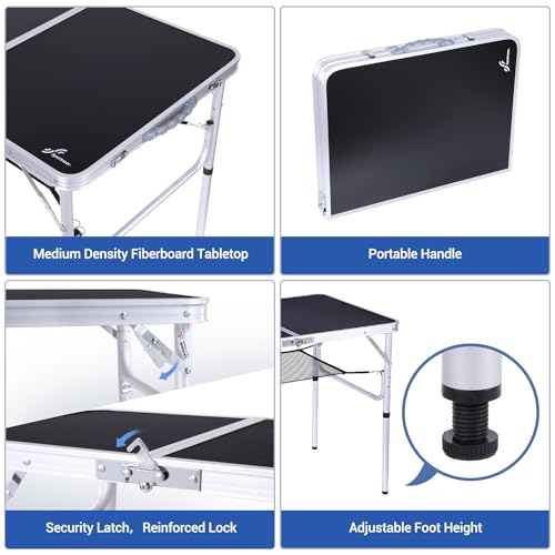 Sportneer Tavolo da Campeggio Regolabile in altezza con uno Strato in Rete, Tavolo da Campeggio Pieghevole Portatile 90 x 60 cm per Campeggio all'Aperto, Picnic, Spiaggia, Cortile, 2 Altezze, Nero