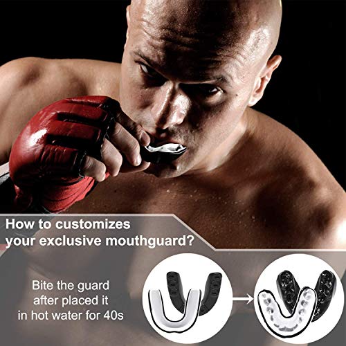Applicazione e garanzia: l'esclusiva custodia traslucida per prima e dopo combattimenti o giochi. I paradenti offrono la massima protezione, ideali per karate, lacrosse, hockey, calcio, rugby, MMA, boxe, arti marziali, wrestling, roller derby e altri sport di contatto. 100% soddisfatti o rimborsati, se c'è qualsiasi problema con il prodotto, non esitate a contattarci, vi offriremo rimborso.