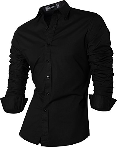 Sportrendy Camicia da Uomo Semplice Tinta Unita Lavoro Camicie Moda Slim Shirts Men Top JZS046 Black M