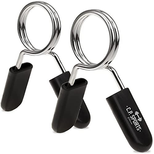 Alta qualità: design di alta qualità con molla stabile in acciaio pieno con doppia torsione (25 mm, 28 mm) o tripla rotazione (30 mm) per una tenuta salda e un effetto di serraggio durevole - tappi terminali in gomma antiscivolo con C.P. Logo SPORTS per una facile maneggevolezza e facile rilascio della tensione.