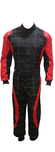 PM Sports Tuta da Kart per Bambini in Polycotton, per Karting Racing Rally Go Kart, Tuta Intera, Interni ed Esterni Sportivi (Black & Red, 170)