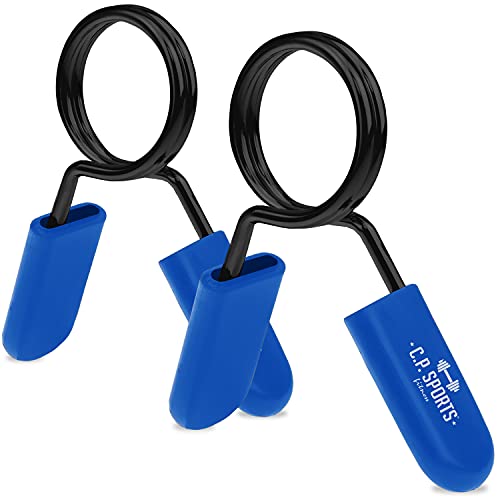 C.P. Sports - Coppia di Chiusure a Molla per bilanciere, in Acciaio Robusto, 25 mm, 28 mm, 30 mm, Allenamento con Pesi, Sollevamento Pesi, Bodybuilding, Fitness (25 mm, Blu)
