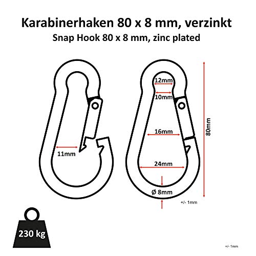 C.P.Sports Ganci a Scatto 80mm x 8 mm & 60mm x 6mm 1-60 Pezzi Ganci a Scatto (8 x 80 mm, 40 Pezzi)